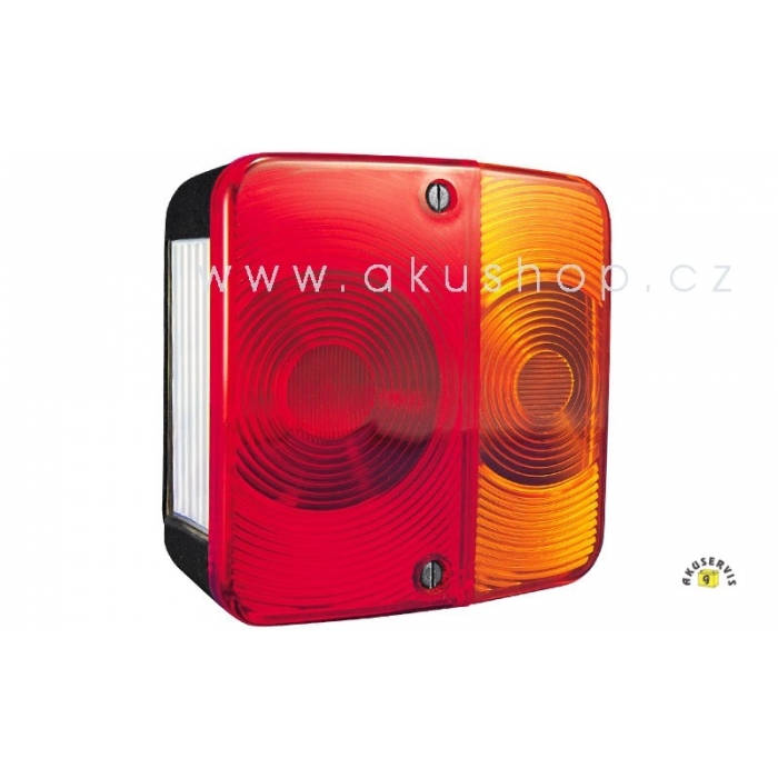 Sdružená svítilna, 2-dílná, LT.06727, světlo poziční, brzdové, směrové, osvětlení registrační značky (zboku), žárovky P21W (12V nebo 24V) a P21W/5W (12V nebo 24V).