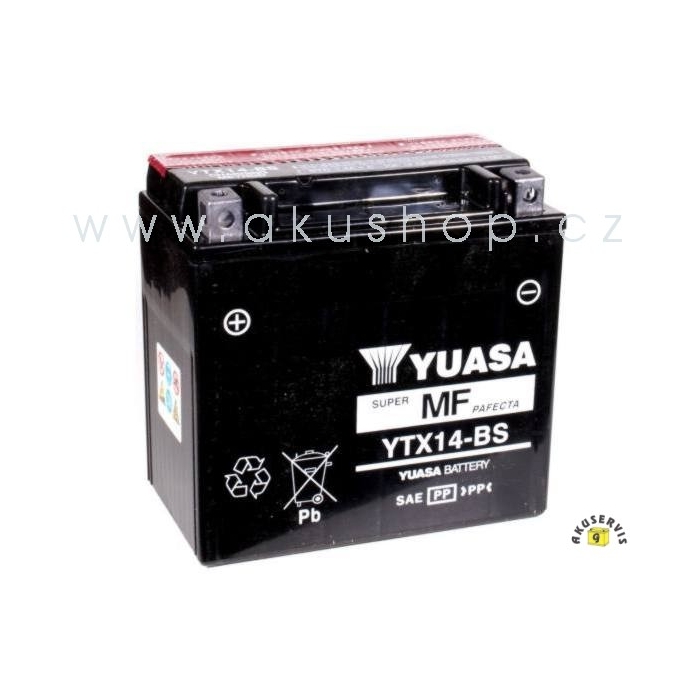 Bezúdržbový (MF) VRLA (bezúdržbový ventilem řízený) akumulátor YTX14-BS nikdy nepotřebuje doplňování, avšak stále vyžaduje periodické dobíjení! Ideální pro motocykly, jízdní a žací stroje a vodní skútry.