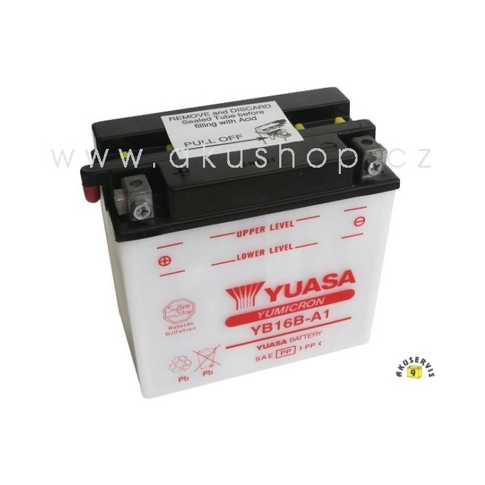 YB14L-B2 12V-14Ah motoakumulátor YUASA. Motobaterie zasíláme suché přednabité. Po naplnění akumulátorovou kyselinou (není součástí balení) a ponechání cca 1 hodinu, je kapacita akumulátoru cca na 70%. Akumulátory Yumicron mají až o 30% vyšší výkon než běžné konveční akumulátory.