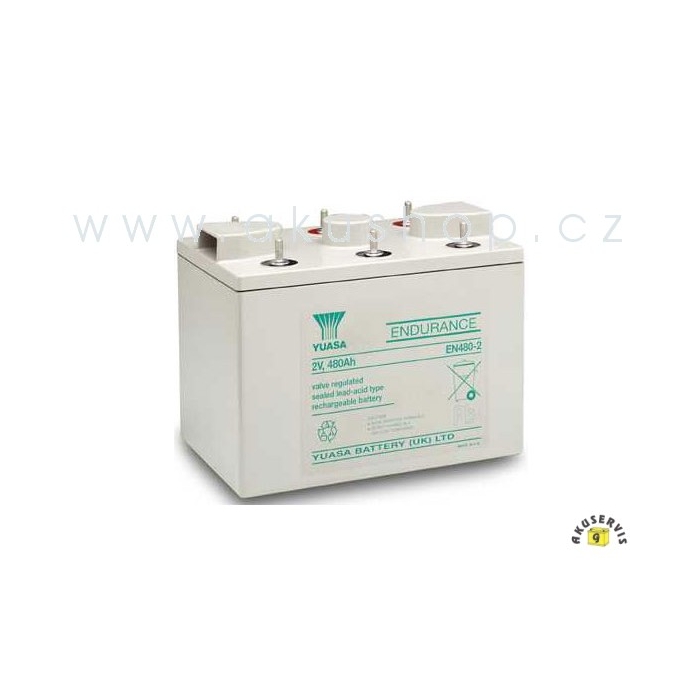 EN 480-2 2V 480Ah - záložní, bezúdržbový, VRLA, uzavřený, akumulátor, výrobce YUASA. Technologie AGM. Určený nejen pro záložní zdroje UPS, EZS, EPS atd.