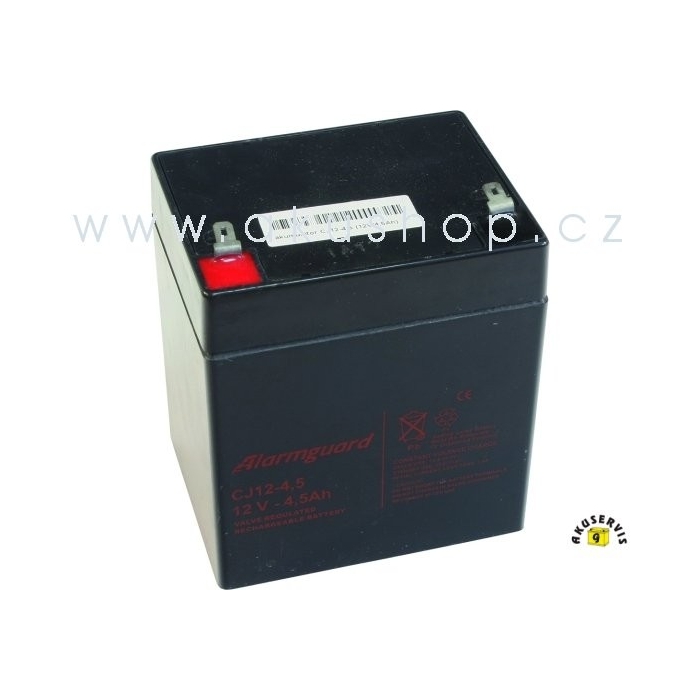 CJ12-4.5 12V 4.5Ah - záložní , bezúdržbový, VRLA, uzavřený, akumulátor značky ALARMGUARD. Technologie AGM. Určený převážně pro EZS, EPS.